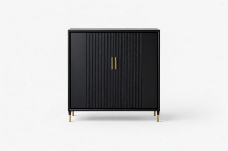 Buffet en Bois MDF Noir avec Pieds Métalliques Dorés